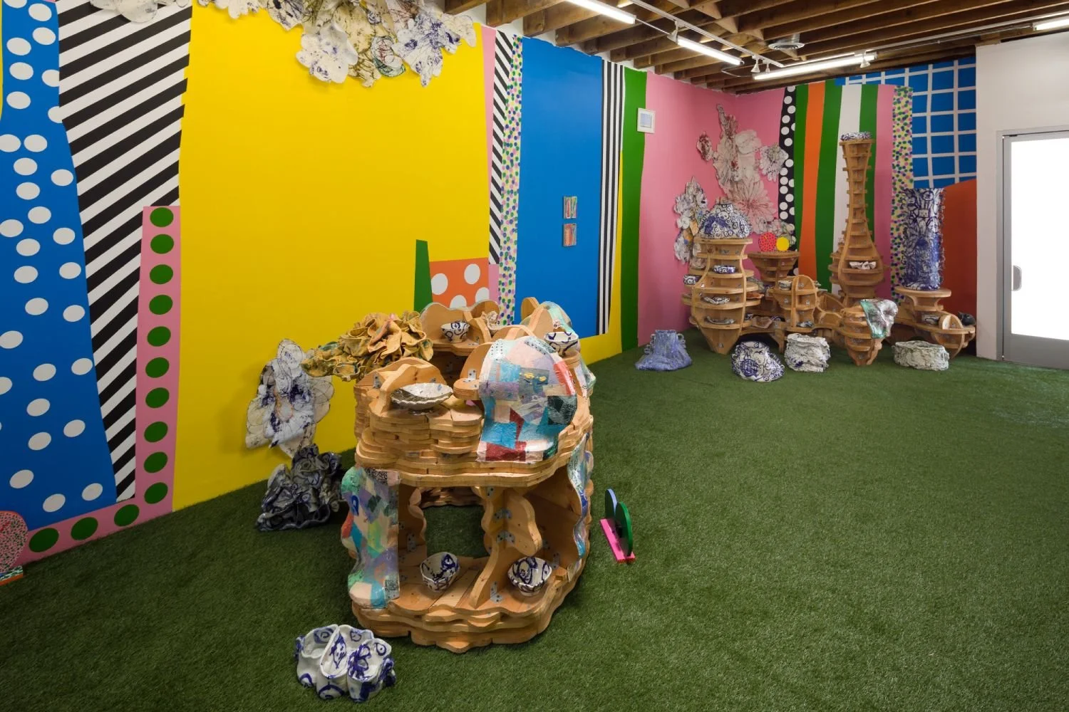 As the lines between globalized spectacle and institutional preservation become increasingly blurred, it is imperative to approach such endeavors in ways that prove adaptive and experiential. This exhibition reflects on the ability of creative practice to traverse both informed viewership and mass accessibility by blending a multitude of cultural signifiers. The vibrant and encompassing installation looks to challenge notions of taste and connoisseurship as well as the role of craft objects within the canon of fine art.